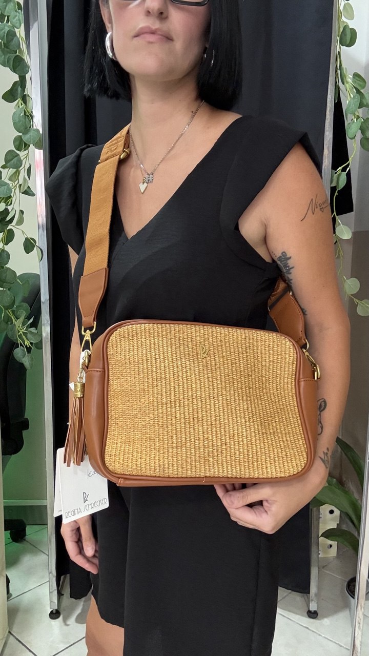 Borsa in rafia e similpelle