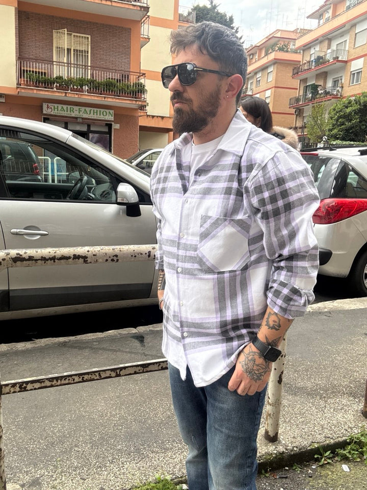 Camicia con bottoni trasparenti, con tasca a sinistra