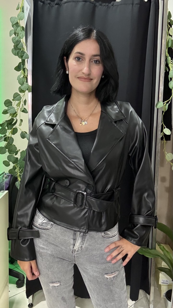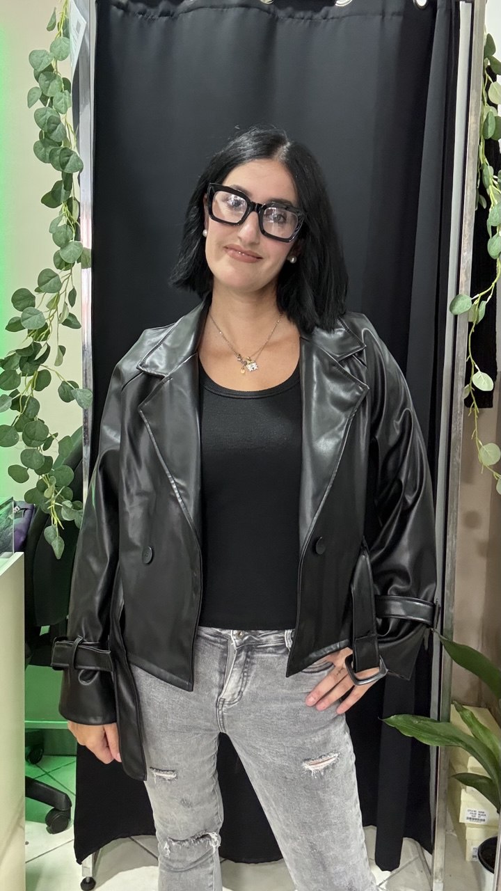Giacca in similpelle con bottoni e cintura