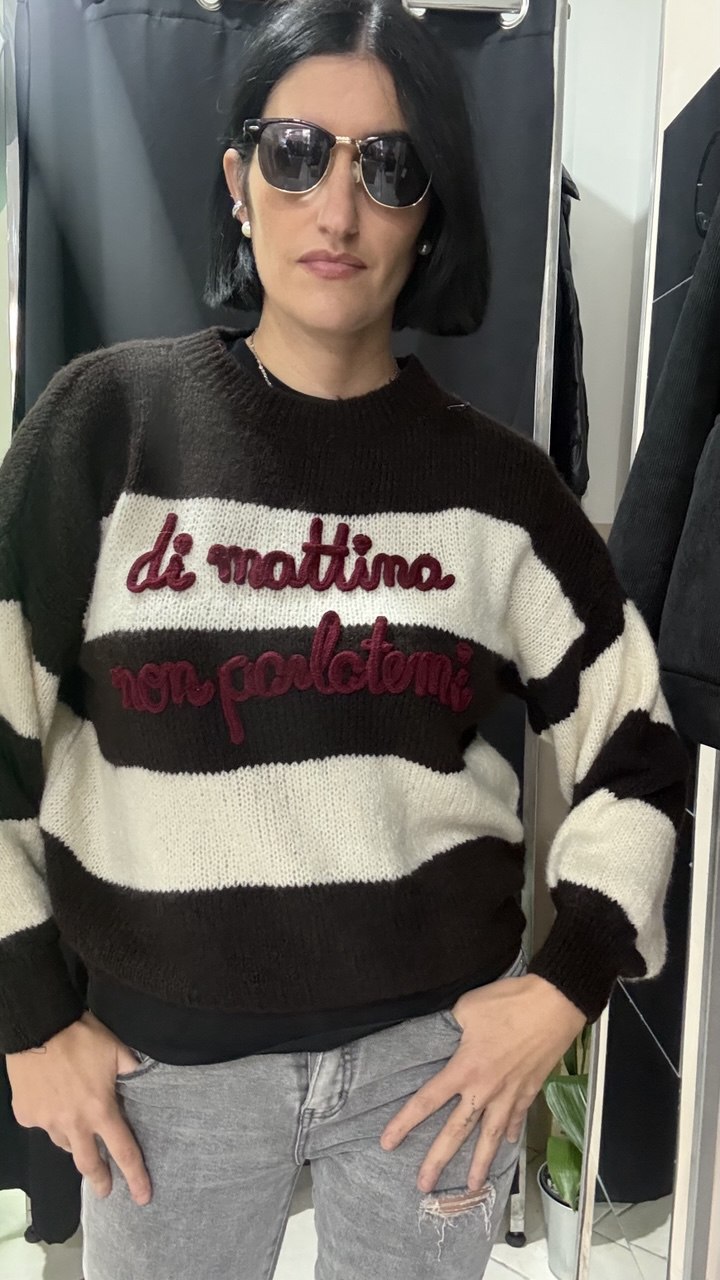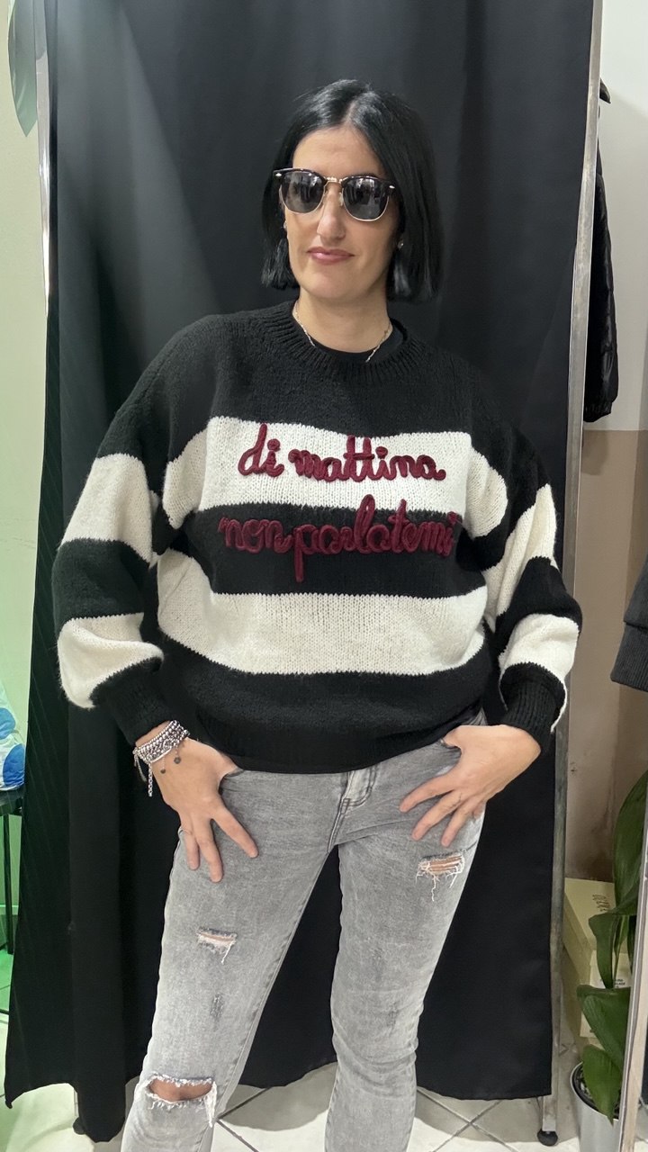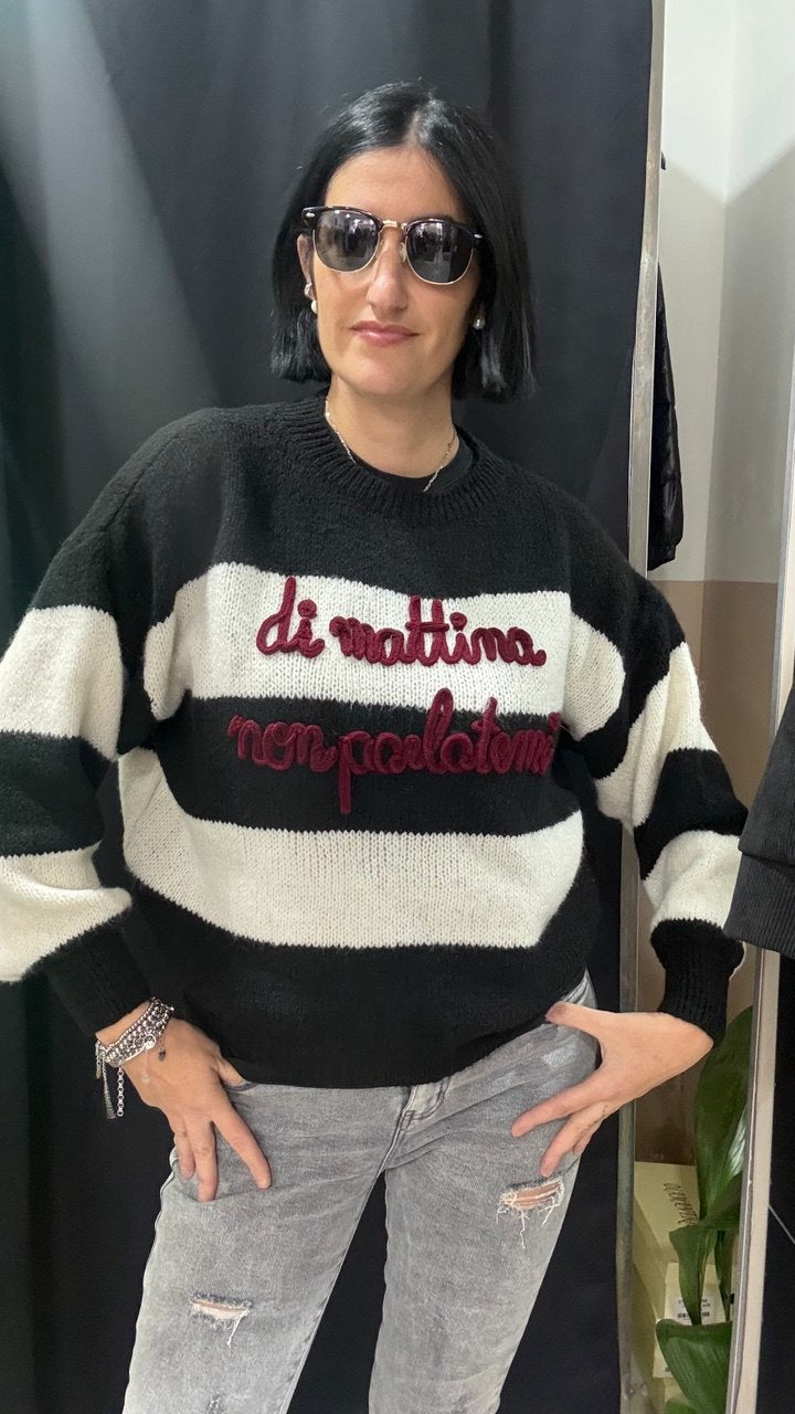 Maglione a righe con la scritta "Di mattina non parlatemi"