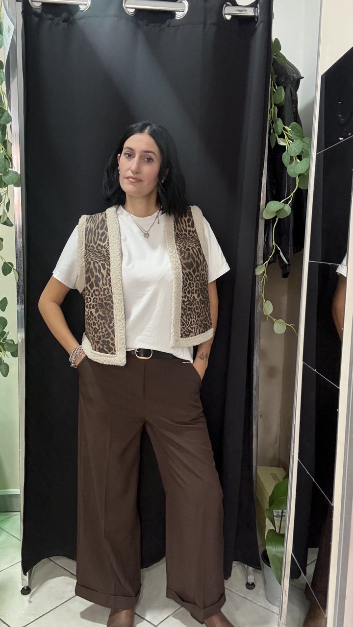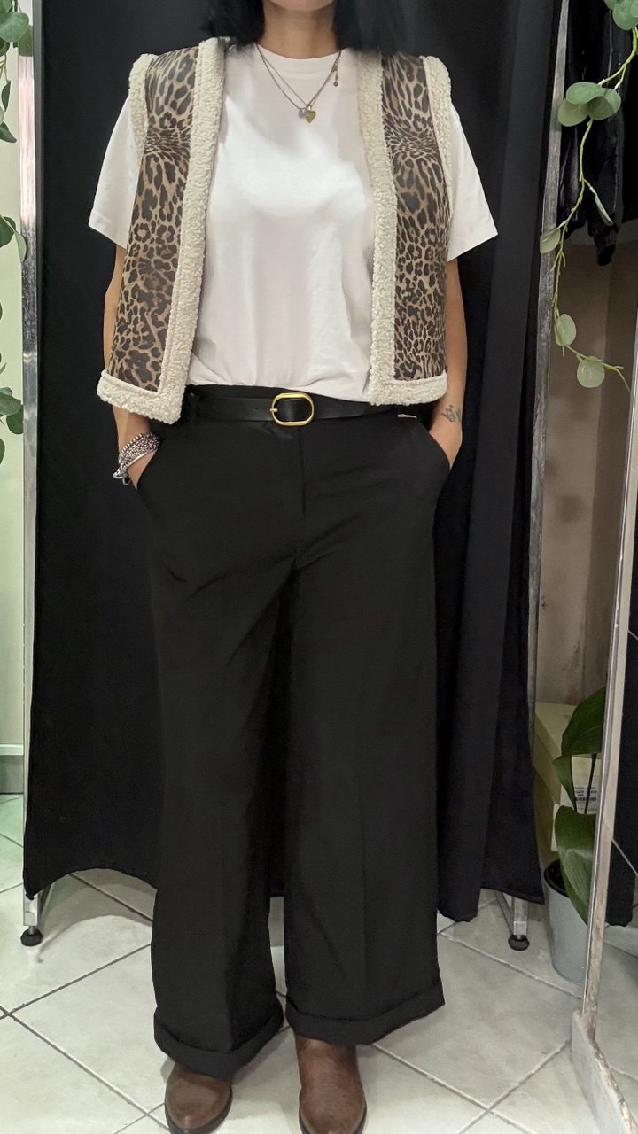 Pantalone palazzo con risvolto sotto non lunghissimo