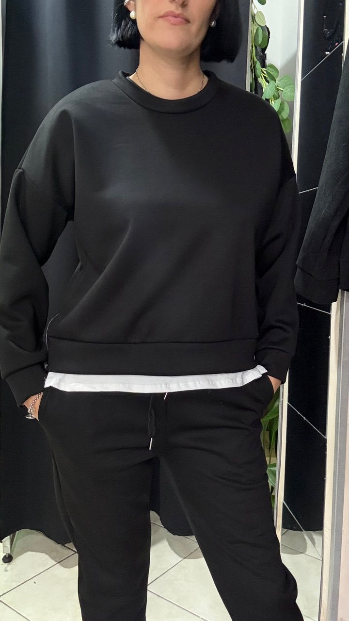 La particolarita' della finta maglia che esce dalla felpa.